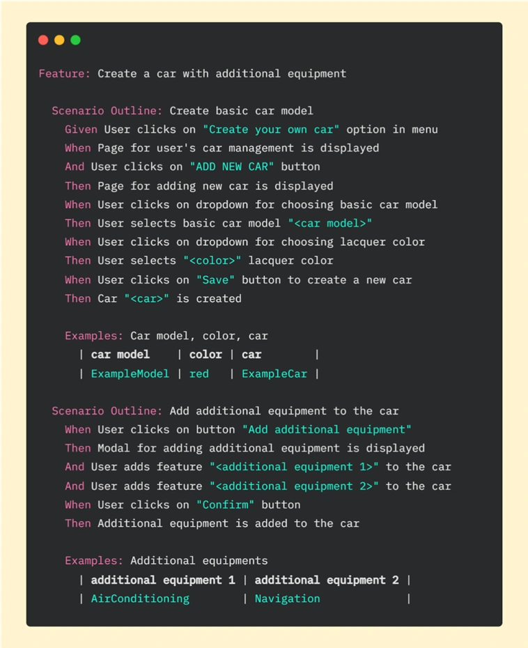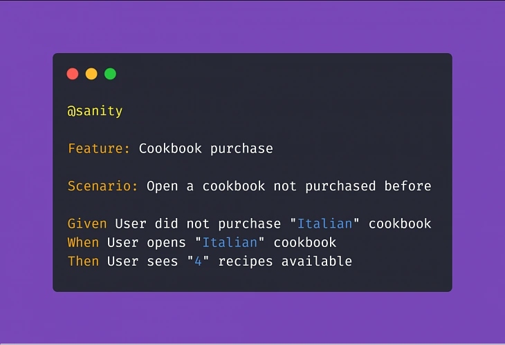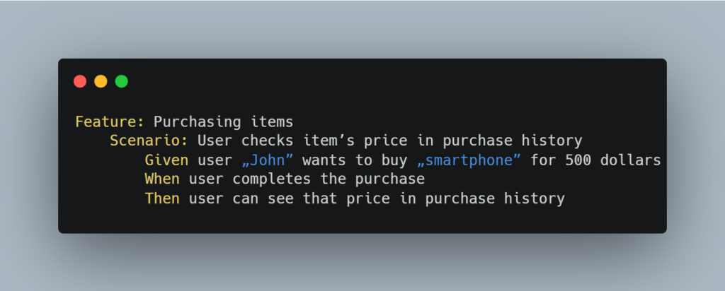 Let's have a look at the following scenario written in Gherkin: