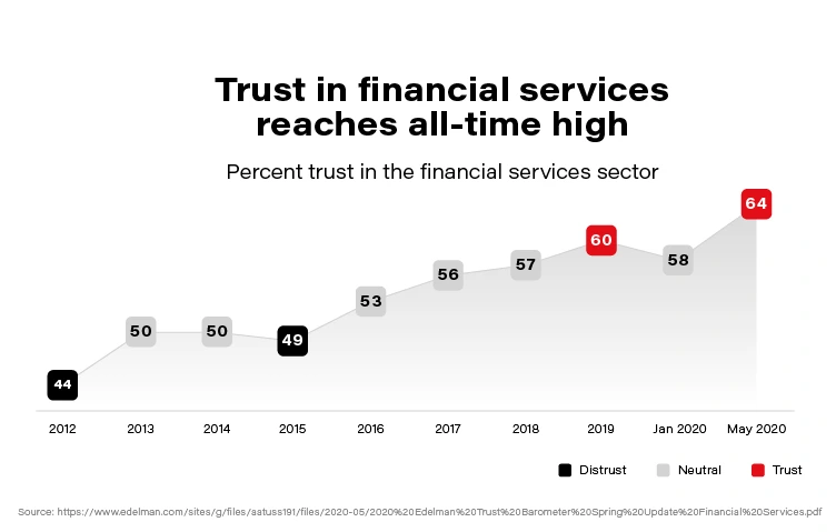 Personalized services shorten significantly the distance between a financial organization and its users, and are based on trust. The more we trust the product the more we are eager to share our personal data in order to receive a tailored, highly individualized service that maximizes value for customers. Trust is still the strongest word in banking. The 2020 Edelman Trust Barometer Spring Update: Special Report on Financial Services and the Covid-19 Pandemic reveals that the public’s trust in financial services has reached an all-time high of 65 percent amid the pandemic.