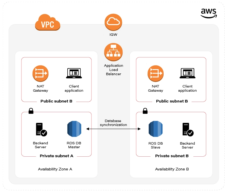 There are many expectations from Enterprise Level infrastructure. From our use case standpoint, we’ll guarantee High Availability, by deploying our infrastructure in two separate AWS Data Centers (Availability Zones) and provide data redundancy by database replication. The picture presented above visualizes the target state of our Enterprise Level Infrastructure.