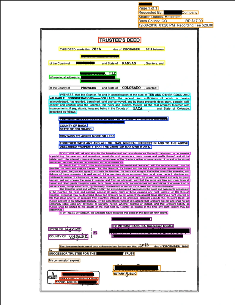 - Considering addresses. There may be as many as 6 addresses on a first page on its own. Some belong to document parties, some to the law office, others to other entities engaged in a given process. Somewhere in this maze of addresses, there is this one that we are interested in – property address. Or there isn’t - not every document has to have the address at all. Some have, often, only the pointers to the page or another document (which we need to extract as well).