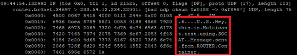As you can see from the table above, the Router container is able to send traffic to both networks so it’s a perfect candidate to serve common messages, like GPS broadcast.