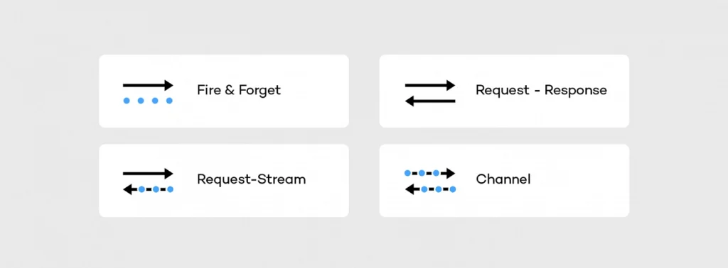 After setting up the connection we are able to move on to the interaction model. RSocket supports following operations: