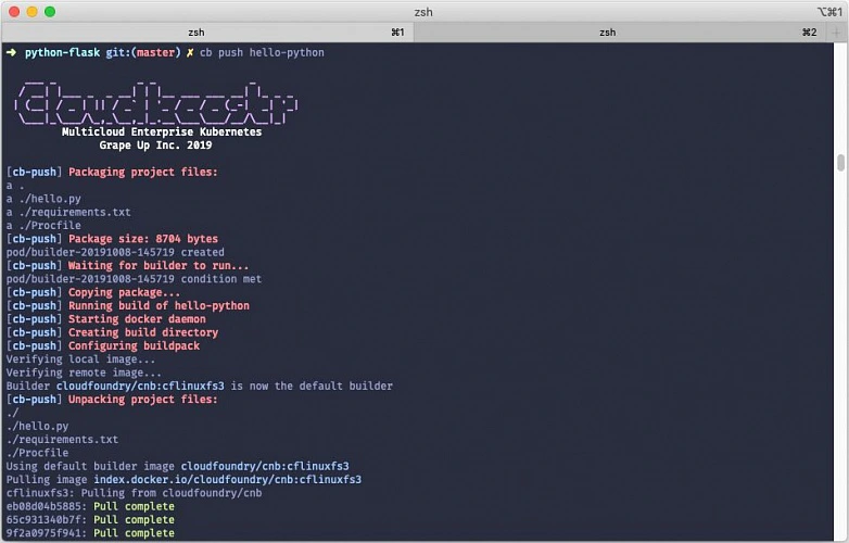 The concept of “pushing” an application to the cluster has been borrowed from the Cloud Foundry community and its famous cf push command described by cf push haiku:
