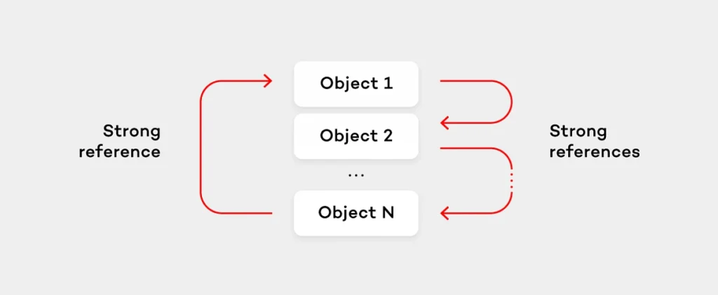 Let’s show an example with retain cycles caused by closures. Commonly, in the example below we avoid the retain cycle by specifying that self should be captured as weak reference.