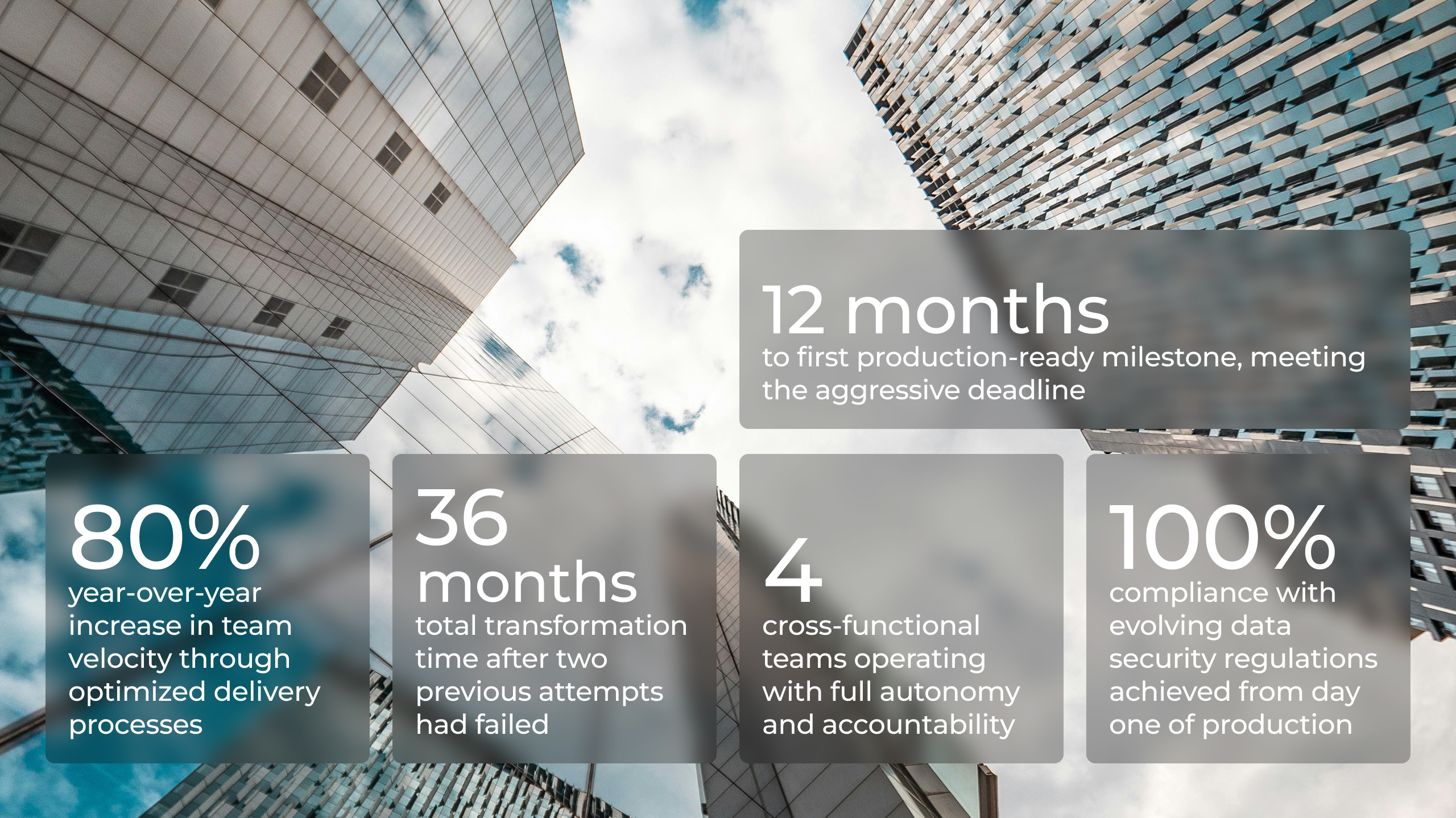 The transformation didn't end with go-live. We left behind an organization with drastically improved velocity, predictable delivery cycles, and the confidence that comes from conquering what once seemed impossible.They're not just compliant - they're ahead of the compliance curve, turning regulatory requirements from constraints into competitive advantages.