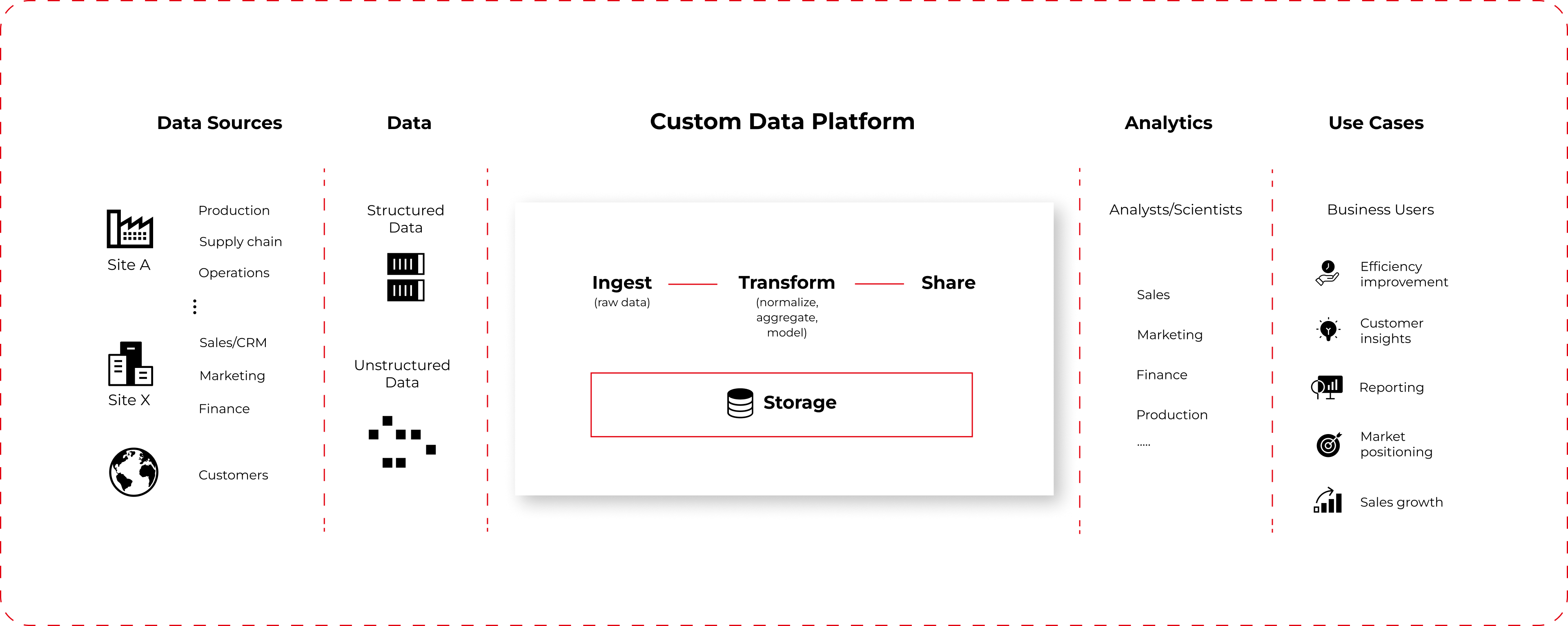 We deliver custom data platforms for market leaders across banking, retail, automotive, and telecommunications. Our solutions unify siloed data across your organization, enabling analytics at scale that drive smarter business decisions.